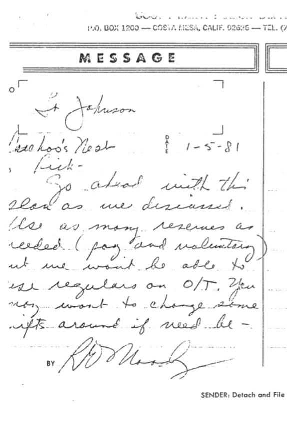 Cpt. Moody to Lt. Johnson, 1-5-1981