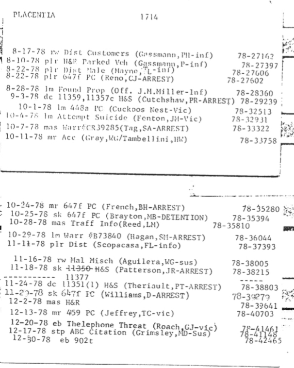 Published inSource Documents for Part III – Cuckoo’s Nest Arrest Index