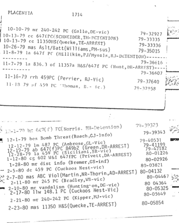Published inSource Documents for Part III – Cuckoo’s Nest Arrest Index