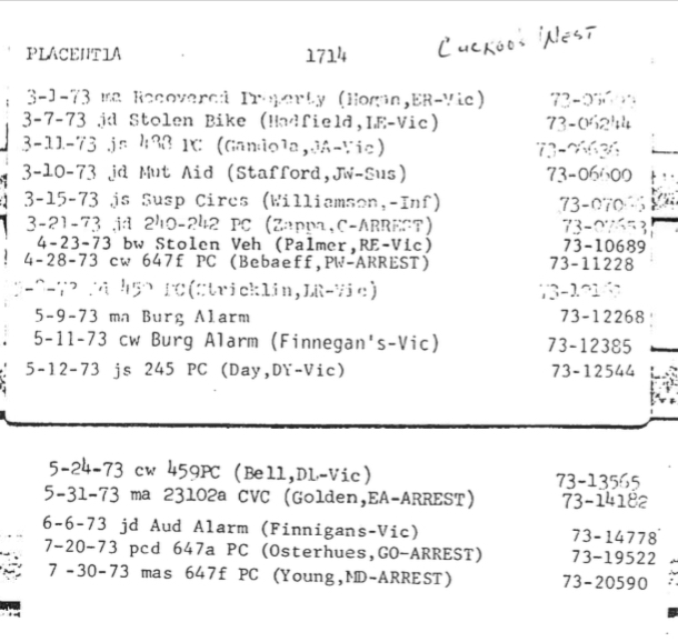 Published inSource Documents for Part III – Cuckoo’s Nest Arrest Index