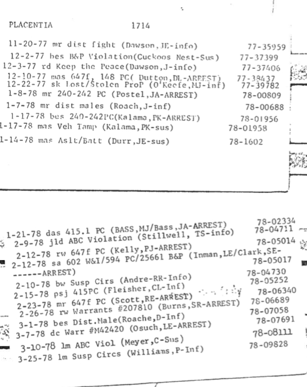 Published inSource Documents for Part III – Cuckoo’s Nest Arrest Index